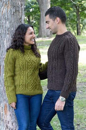 Here's the perfect cabled sweater to knit for your lucky guy! The cables are fun to knit and easy to wear. Be sure to look at the matching woman's version as well!