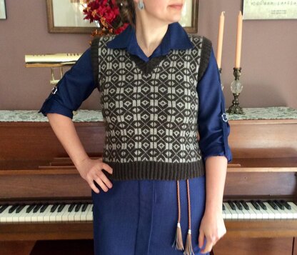 Shatar (Mongolian - “chess”) Vest is a modern take on a classic fair-isle vests, design to be unisex in fit and style. Traditional geometric Colorwork pattern, reminiscent of a grid or chess board, is knit in two high-contrasting colors of Fingering weight yarn. Close-fitting design can be worn with 0 up to 4 inches of negative ease, proving the fit that is tailored and perfect for layering. While the cropped version is flattering on a female body, the full length version will complement the male form. Made in a luxuriously-soft baby Yak yarn, this vest will be soft, durable, and will become a heirloom piece.
