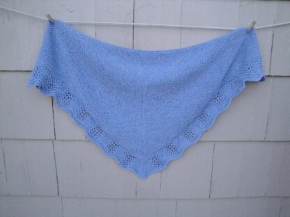 My comfort shawl - a basic knit with just a bit of pretty lace for femininity. This shawl with a lace edge can be knit in garter or stockinette. Garter gives a nice squishy fabric that’s super cuddly, and feather & fan lace creates lovely scallops.