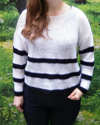 This slouchy oversized sweater mostly appears sheer apart from the thicker double knit stripes.