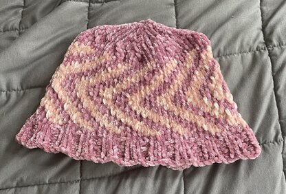 This is a simple and quick zigzag hat pattern with an easy to remember 6 stitch repeat that fly’s off the needles. The sizes listed are a child’s or small adult 18 inches, a 23 inch and a 28 inch size to fit all head sizes. The pattern uses about 200 yds of worsted weight yarn, 150 for the main color and about 50 yds for the accent color.