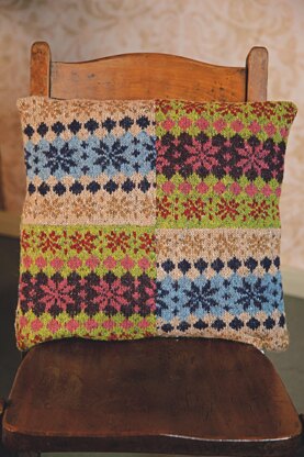 This cushion in Rowan Felted Tweed DK has beautifully subtle blends of colour, just like the traditional dyes of Shetland wool. It is designed in separate blocks, knitted using the Fairisle technique. They are sewn together at the end, like patchwork. Each square measures 19cm/7.5in so adjust needle size if necessary to obtain correct tension.