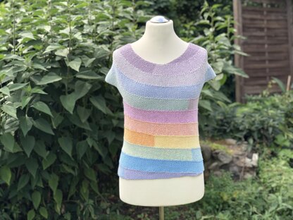 Dieses wunderschöne Stück sollte nicht in deinem Kleiderschrank fehlen. Im Sommer trägst du es einfach so und an kühleren Tagen ziehst du es über deine Lieblingsbuse. Das Shirt wird in einem schmalen spiralförmigen Streifen gehäkelt. Durch das Farbverlaufsgarn entsteht dann dieses sensationelle Muster. Es wird von oben nach unten in einem Stück gehäkelt.