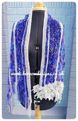 This beautiful scarf/wrap has been created using the fabulous Rayleigh Scattering & Moon Glow on the Stellar Base, from the lovely Mad Scientist Yarns.