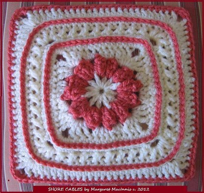 Rated Intermediate to Advanced--highly textured and a little bit challenging, using cables/popcorns/and surface slip stitches with invisible joins and fine finishing techniques. There is a detailed photo tutorial as a separate pdf. I'm willing to help--just PM me for links to resources or tutorials. Lovely for swaps and sampler afghans.