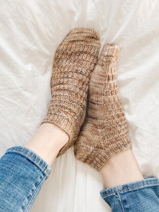 These socks are short and sweet and full of texture - my dream socks! These socks are knit from the top-down, with a heel flap and gusset, and knit up quickly using a DK weight yarn and 3.25mm/US 3 needles.