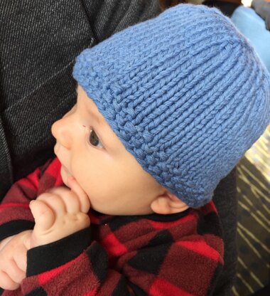 This quick and easy baby hat is a hit at baby showers, as well as being perfect for charity knitting, and has a matching sweater. The smallest size of this hat took me literally an hour to make, from casting on to weaving in the ends. If you factor in time to get ready, wrap it up (possibly with the sweater you made during the week) and drive or walk to the shower, you are ready to go with a gift that will be appreciated.