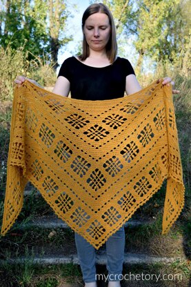 Sienna Shawl is a lovely triangle shawl that begins from a bottom tip with increases placed along the edges.
