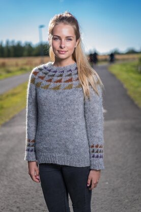 Sigla is a lopapeysa with a modern geometric yoke. Worked entirely in the round from the top down. The loose gauge promises a quick knit and an exceptionally lightweight garment.
