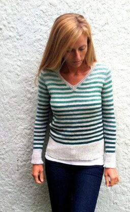 A sweet V-neck and a gradient of colors adds panache to an otherwise simple pullover.