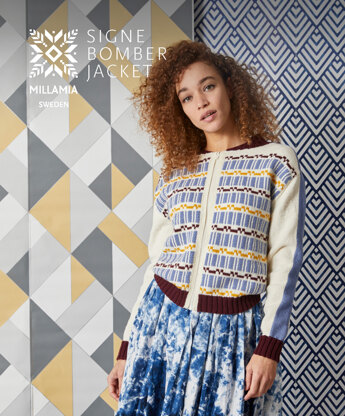 Download the PDF pattern for Signe Bomber Jacket - Knitting Pattern For Women in MillaMia Naturally Soft Merino by MillaMia & start knitting today!