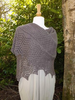 Signy is a triangular slightly crescent shaped shawl of scarf that will drape gracefully around the shoulders.