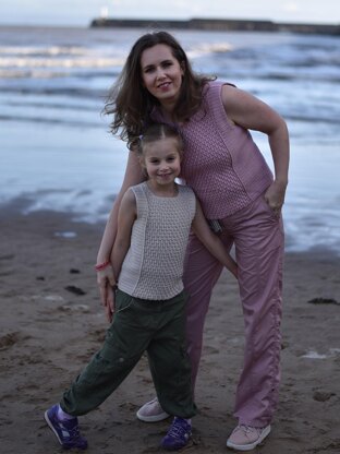 Silica Tee is comfortable sleeveless top is crocheted back and forth in half double crochet stitch with textured panel at front. It is designed with positive ease about 5-10 cm/ 2 - 4 inches. Back and front parts of the top are made separately. After shoulder and side seams are seamed together, a simple border around the neckline and armholes is added.