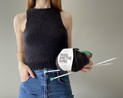 Simple Crop Vest Top Knitting Pattern. Beginner-friendly, super simple and quick knit all in garter stitch with rib trim.
