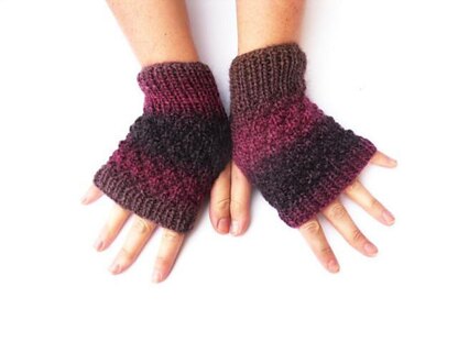 Easy to knit, but simply stunning when worn. It’s the colours in the yarn and the knobbly pattern that make these simple fingerless gloves look ace.