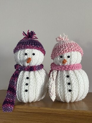 These simple snowmen are the perfect addition to your holiday season. No complicated stitches or directions. They knit up fast on straight needles and can be used for gifts for anyone during the holiday season. Personalize with a variety of colors for each snowman's hat and scarf. Each of the snowmen stand on their own. The only stitches used are knit, purl, knit two together, and purl two together. This pattern is perfect for beginners!