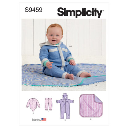Simplicity Babies' Bodysuit, Jumpsuit, Pants and Blanket S9459 - Paper Pattern, Size XXS-XS-S-M-L