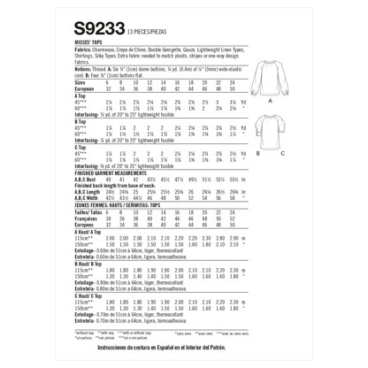 Simplicity Misses' Tops S9233 - Sewing Pattern