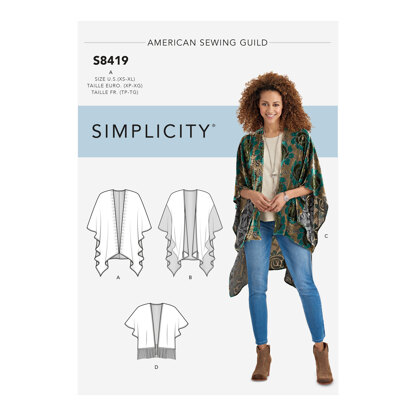 Simplicity Women's Wrap with Variations 8419 - Paper Pattern, Size A (XS-S-M-L-XL) is a Sewing pattern by Simplicity, available as a Paper Pattern and includes instructions in English, Spanish. Super fun to make, this pattern could be your next masterpiece!