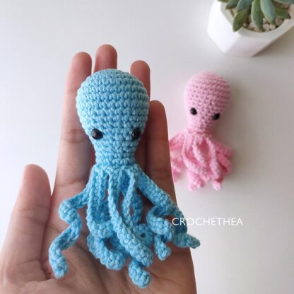 If crocheted with sport yarn and 2 mm crochet hook, this simply cute octopus should measure about 5 cm (2 inches) tall.
