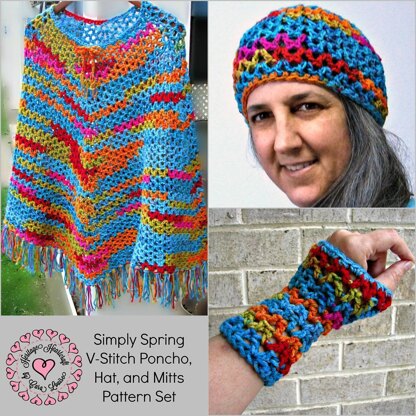 Simply Spring V-Stitch Poncho, Hat, and Mitts Set