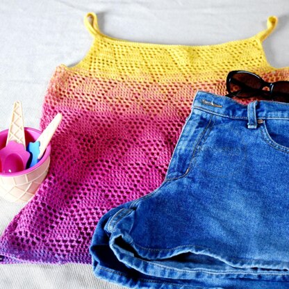 Simply Summer Crocheted Tank - is everything that embodies of the ease of the summer months. Designed with just a little extra in mind ... as the triangle symbol is a simple one, but is also one with a great amount of meaning behind it. Due to the fact that triangles contain three corners and three sides they are often linked to different trinities. However, in this case the three sides of these triangles represent: FUN, LOVE and LAUGHTER! (SUMMER) :o)