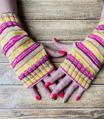 Knitted fingerless gloves will keep your hands warm during chilly Autumn or Winter.