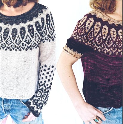 *Sipila is knit from the top down in the round. There are options for either long or short sleeves; make sure you check the suggested yardage for the version you prefer, as the long sleeve version will require more yardage. The body length is easily customizable, but changing it will also affect the yardage, so please keep that in mind. *