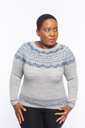 Sisipho is a circular yoke pullover knit from the top down. The pullover features some interesting Fair Isle pattern on the yoke with some short row shaping worked to raise the back neck.