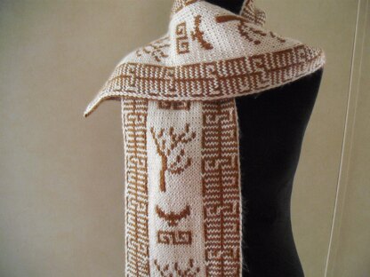 This is a slipped stitches double-knit scarf pattern. The pattern contains two (2) charts and simple written stitch instructions. There is one key for both charts.