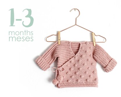 Crochet this beautiful and practical NEO Crossed Baby Jacket using nice Bobble stitches. The best garment for a baby and super easy to put on and take off. It is simply as laying the jacket open, putting your baby on top, closing it and, you are done!