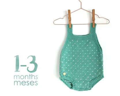 In this pattern you will find a list of stitches and techniques used, materials, abbreviations, row by row detailed instructions and knitting diagrams to get a perfect knitted romper!