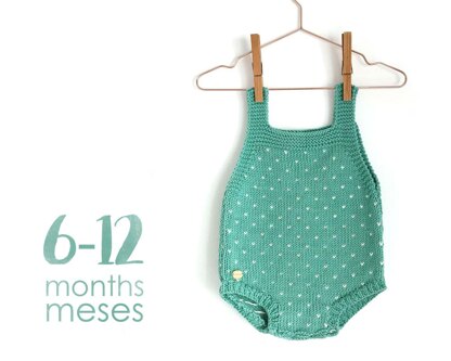 In this pattern you will find a list of stitches and techniques used, materials, abbreviations, row by row detailed instructions and knitting diagrams to get a perfect knitted romper!
