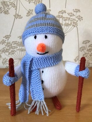 A few years ago I saw a gorgeous resin christmas ornament of a snowman skiiing. I loved the colours of blue and grey and set out to try and create a knitted version. I had such fun making it and working out how to create the ski poles and skis, and I hope you enjoy kniting him as well.