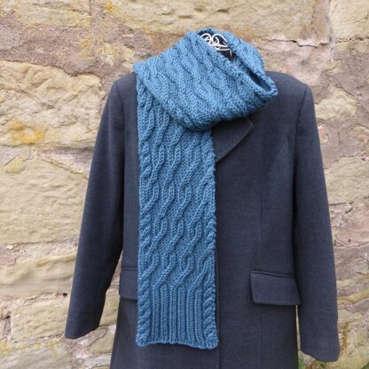 The cabled 'stones' in this extra long, thick and cozy scarf skim diagonally across the surface in seven bounces from one side to the other. A new stone is sent on its journey every pattern repeat.