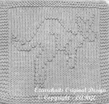 Straight knitting needles, size US 7 (4.5mm) 100% Cotton Medium/Worsted Weight yarn 60 yards In any color you choose. Stitches: knit & purl. Skill: Beginner Finished Size: 7.75”W X 8.25” H Darning needle for finishing.