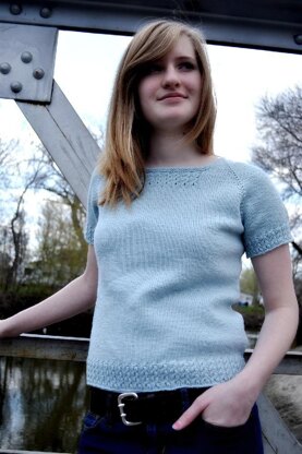 When I thought about this sweater, the background music in my head was a song by Wilco called, “Sky Blue Sky”. So, there you go. A sweater was born. I generally start with a sketch and idea and match the yarn to it. With this top down raglan, the yarn and color came first. The simple shape, with the yarn over cable edging, makes me think of happy thoughts and days with blue skies.
