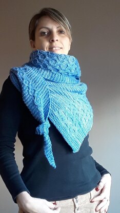 A triangular shaped wrap, made with a quite big yarn that will give you results very quickly! The chain texture stitch creates an interesting motif that breaks the monotony of the garter stitch which gives a great softness to the wrap. It can be worn by both women and men due to its unisex pattern.