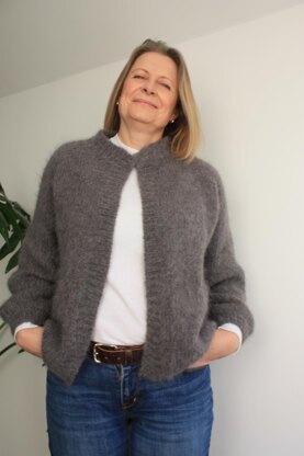 Skyja, Icelandic for cloudlike, is a lightweight alpaca cardigan knitting pattern designed for relaxed layering and everyday wear. Warm yet airy, this cardigan is ideal for in-between seasons and compact enough to fit easily into a travel bag, making it a perfect companion for life on the go. Knitted in stockinette stitch with a soft alpaca yarn, Skyja showcases a delicate halo and beautiful drape that feels whisper-light while still providing comforting warmth. The fabric is intentionally loose and breathable, creating a modern cardigan that feels cozy without being bulky.