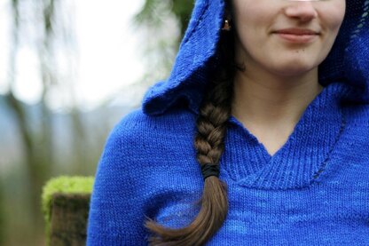 A sleek hoodie with bias ribbed borders. If you are not ready to try to knit the borders and then graft them in ribbing, there are directions telling how to use regular ribbing instead.