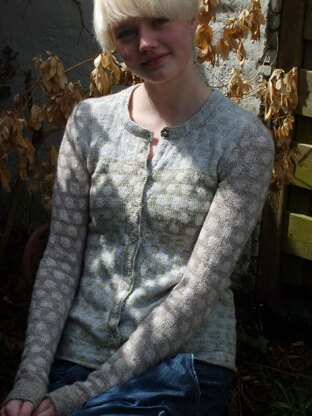 It's knit in the round, bottom-up, with steeks for front, armholes, neck and sleeve caps. The fronts have picked-up stitches to create a double buttonband for snaps.