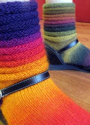 There isn't a single purl stitch in these socks! Really! Slinky socks use a simple wrap and turn technique to make these socks fly off the needles.
