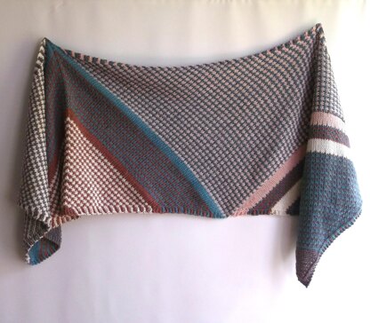 This bold wrap starts with the usual triangular shawl shape and then sections are added to create the length and some interesting pattern direction.