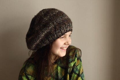 The beret is knit in the round.