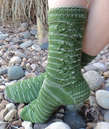 All four Hogwarts House Uniform Socks are designed with similar elements: lace, cables, and slipped stitches. Each pattern is unique, based on the Hogwarts Professor who is the Head of House and the subject that Professor teaches.