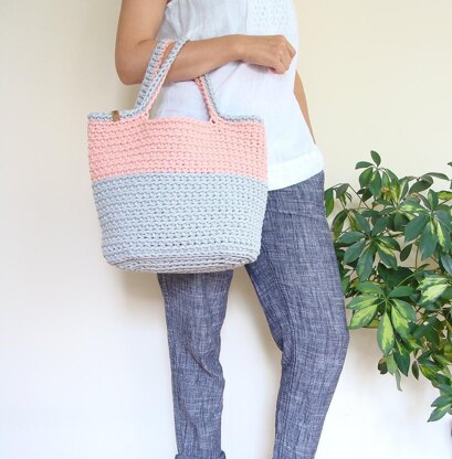 Stylish small-size basket tote to brighten up your every summer outfit whether it is a dress or shorts and t-shirt. Use this crochet purse also as your everyday tote bag, beach bag, or shopping bag! Perfect as a gift too.