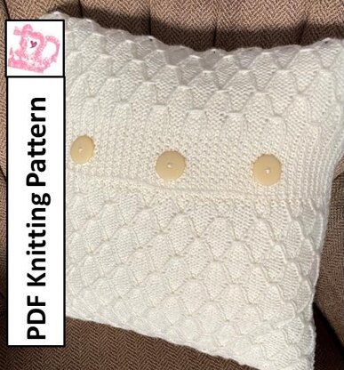 Knit using aran /#4/ worsted yarn, this pattern creates a beautiful, textured pillow cover with the effect of smocking and has a three button closure.