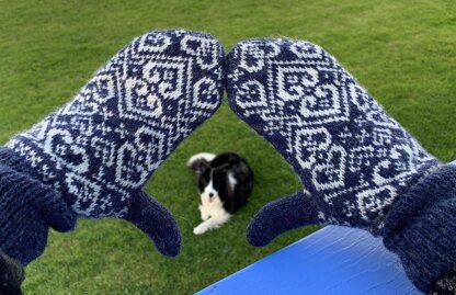 When our children were small we used to play a game with them at bedtime to keep the scary monsters away! We used to blow 1000 kisses into the air and get them to catch them in their hands then pop them under their pillows to give them reassuring kisses if they needed them during the night. ‘Smooriken’ is Shetland dialect for a kiss and these mitts are covered in love and kisses to reflect this. If you look closely you may see a smiley monster too! The mittens are knitted cuff to tip entirely in the round. An afterthought thumb is added and a hyperlink is included in the pattern if you are u familiar with this technique.