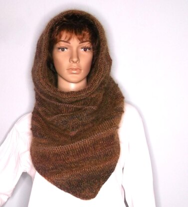 Holding a strand of both yarns together, this pattern starts as an asymmetrical triangle worked in straight rows back and forth and is then joined to work in the round to create the cowl tube.
