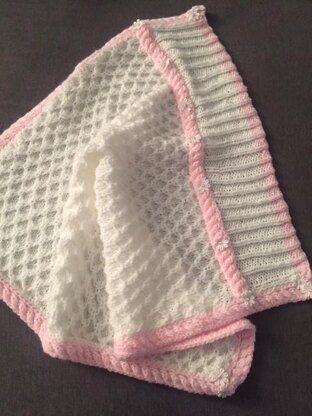 Although I have used pink for the border, this design is equally suited for all white or a contrast in any other colour making it suitable for boys as well as girls.